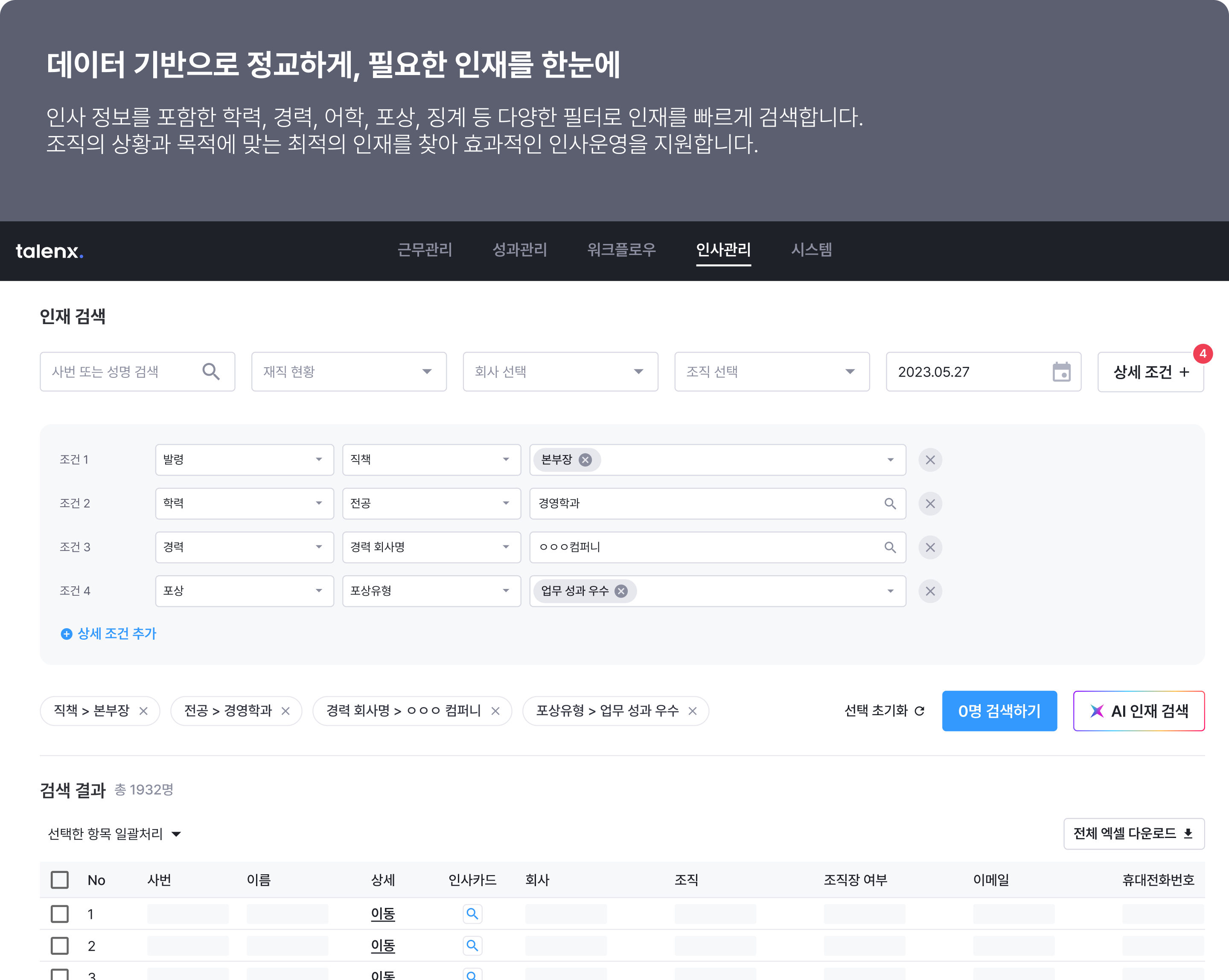 인사 정보, 개인 정보, 조직 및 발령 등 모든 관리를 한곳에서 안전하고 유연하게